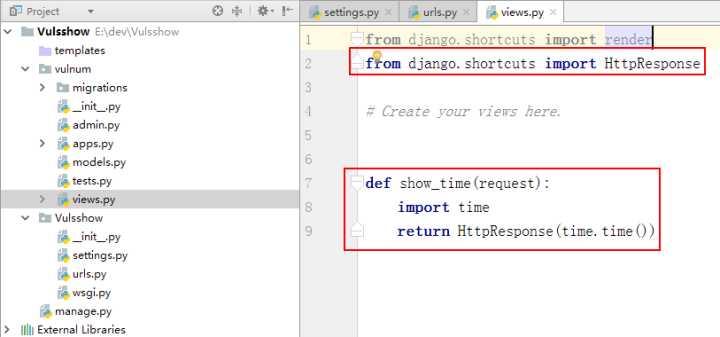 创建一个最简单的视图函数用来显示当前时间。