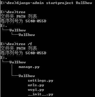 使用django-admin startproject VulShow 命令创建一个名为VulShow的『项目』。其相应的目录结构如下:
