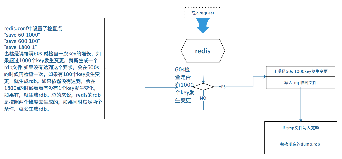 save可以设置多个,就是多个snapshotting检查点,每到一个检查点,就会去检查一下,是否有指定的key数量发生变化,如果有就生成一个新的dump.rdb文件。