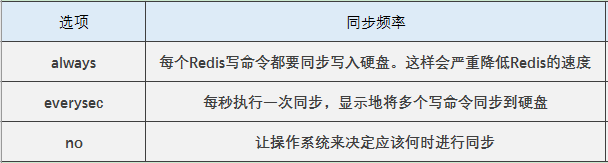 另外,当用户的硬盘处理写入操作的速度不够快的话,那么缓冲区被等待写入硬盘的数据填满时,Redis的写入操作将被阻塞,并导致Redis处理命令请求的速度变慢,因为这个原因,一般不推荐使用这个选项。