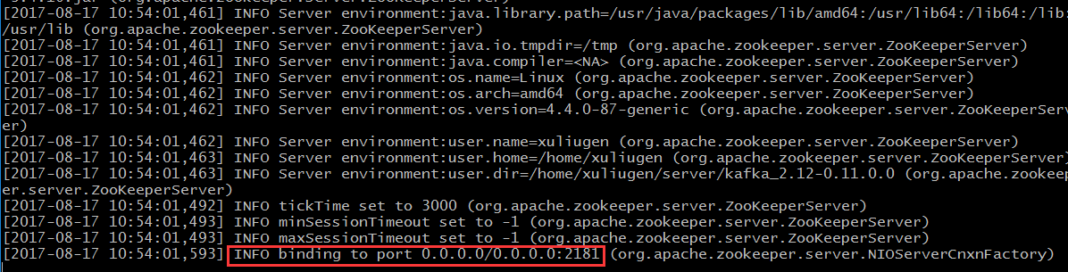 >bin/zookeeper-server-start.sh config/zookeeper.properties