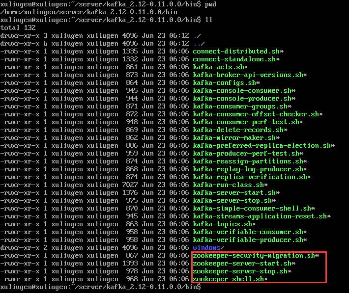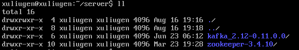 (1)将Kafka安装包分别上传到3台服务器,我的是放在:/home/xuliugen/server 目录下。