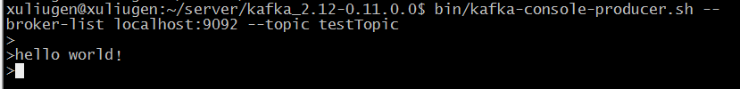 >bin/kafka-console-producer.sh --broker-list localhost:9092 --topic testTopic