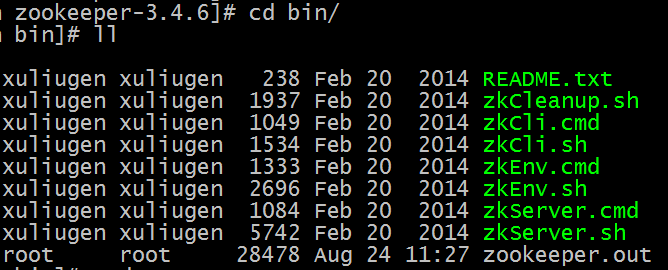 查看zookeeper日志的话,是在/zookeeper-3.4.6/bin 目录下的zookeeper.out 文件:
