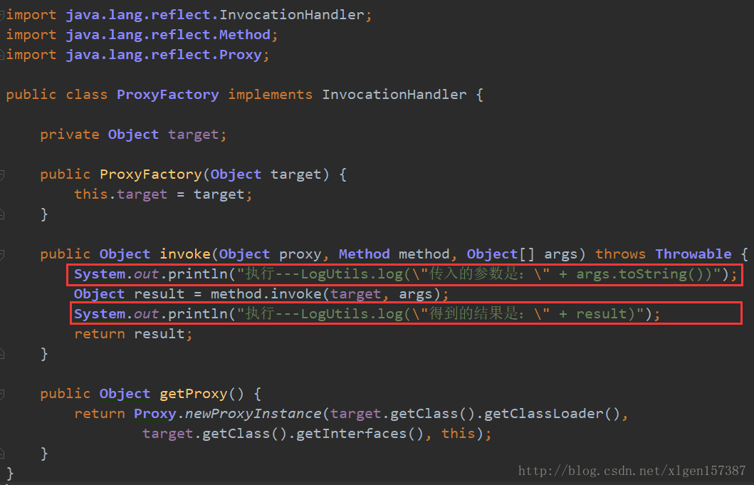 如果你对设计模式玩的比较熟的话,这个时候你可能会想到使用JDK动态代理设计模式(动态代理设计模式可以在原有的方法前后添加判断、选择或其他逻辑)对上述代码进行改进,(关于什么是JDK动态代理,这里不再详细赘述,有不懂的的可以查阅相关资料具体了解一下!)修改后的代码如下: