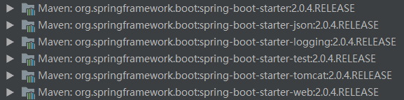 Spring Boot提供了一系列的starter pom用来简化我们的Maven依赖,下边是创建一个web项目中自动包含的依赖,使用的starter pom依赖为:spring-boot-starter-web
