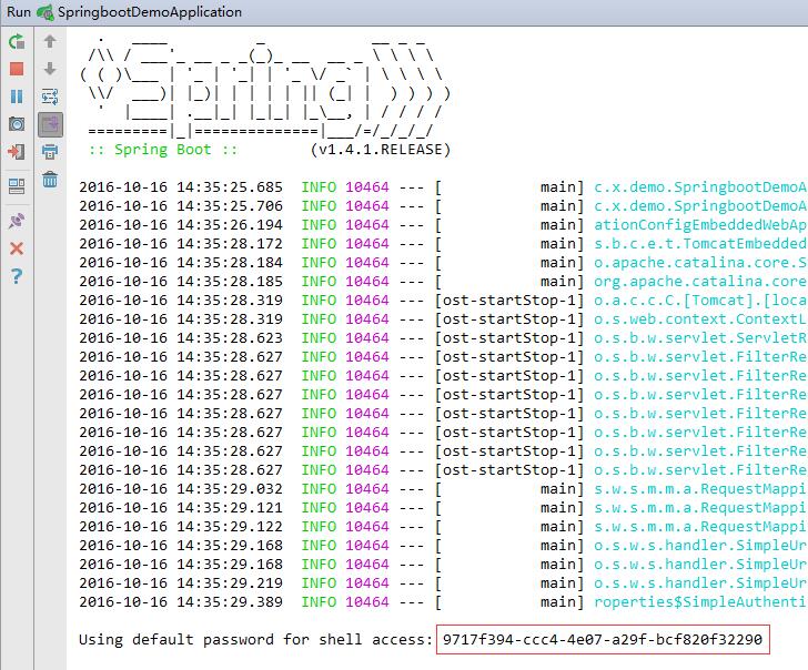 2、运行项目,此时在控制台中会出现SSH访问的密码: