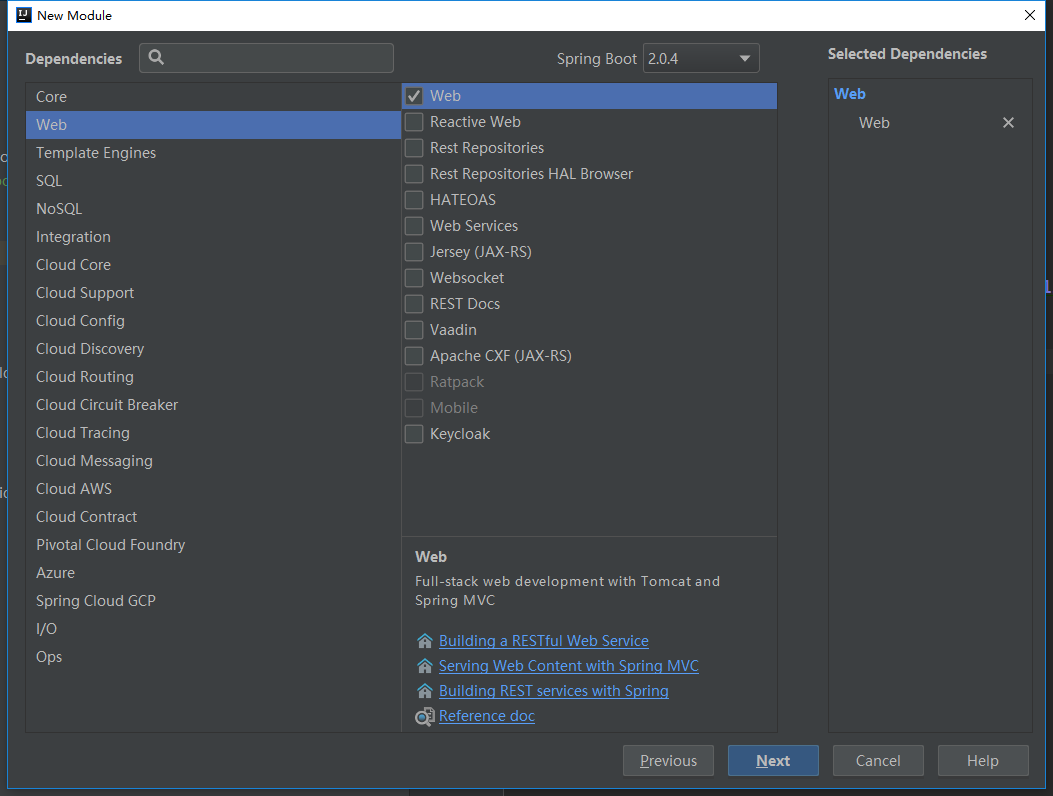 (3)点击Next,选择Dependencies,这里创建Web项目选择-----Web: