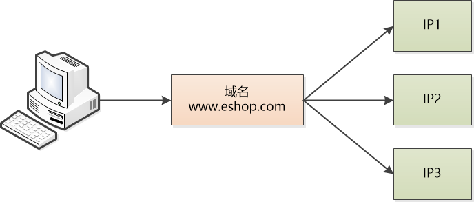 张大胖眼前一亮, 突然有了主意:“有了!我们有个中间层啊,对,就是DNS,我们可以设置一下,让我们网站的域名映射到多个服务器的IP,用户面对的是我们系统的域名,然后我们可以采用一种轮询的方式, 用户1的机器做域名解析的时候,DNS返回IP1, 用户2的机器做域名解析的时候,DNS返回IP2...... 这样不就可以实现各个机器的负载相对均衡了吗?”