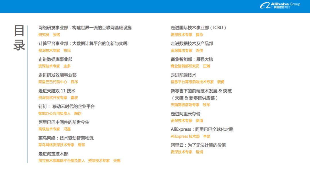 这套图册的分享者多达三十位,几乎都是阿里重要部门的研究员、资深技术专家、资深算法专家等技术大牛。