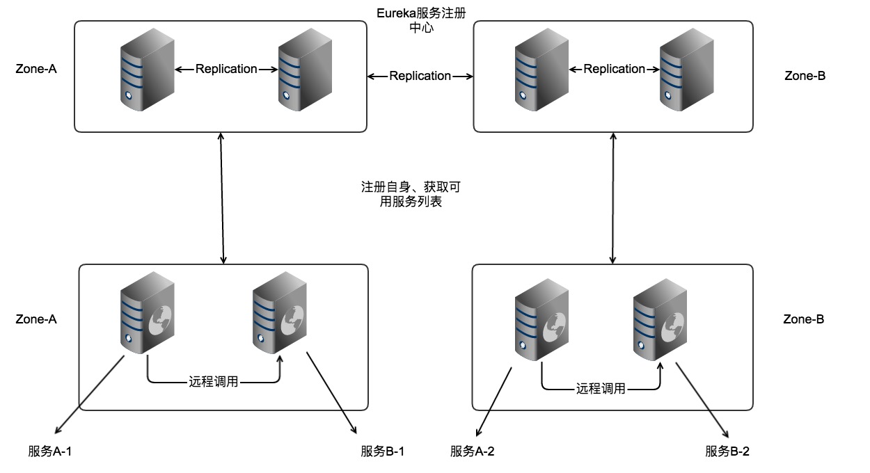 Eureka支持Region和Zone的概念。其中一个Region可以包含多个Zone。Eureka在启动时需要指定一个Zone名,即当前Eureka属于哪个zone, 如果不指定则属于defaultZone。Eureka Client也需要指定Zone, Client(当与Ribbon配置使用时)在向Server获取注册列表时会优先向自己Zone的Eureka发请求,如果自己Zone中的Eureka全挂了才会尝试向其它Zone。当获取到远程服务列表后,Client也会优先向同一个Zone的服务发起远程调用。Region和Zone可以对应于现实中的大区和机房,如在华北地区有10个机房,在华南地区有20个机房,那么分别为Eureka指定合理的Region和Zone能有效避免跨机房调用,同时一个地区的Eureka坏掉不会导致整个该地区的服务都不可用。