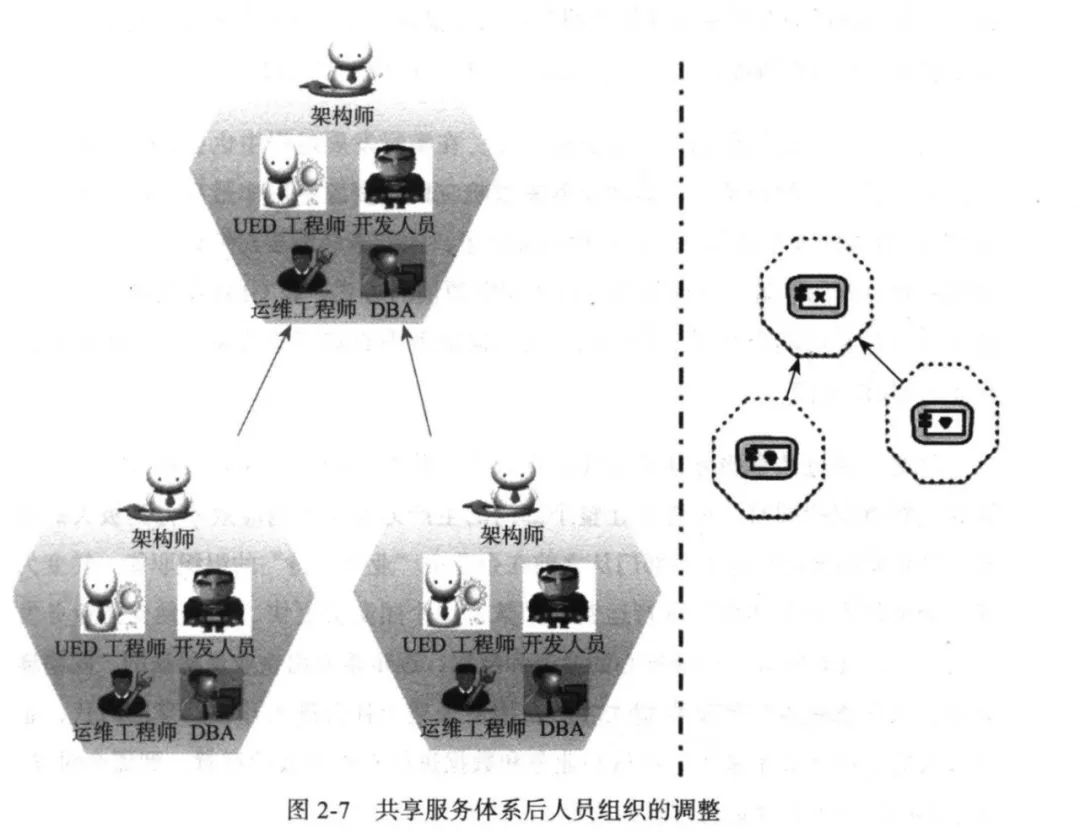 针对每一个建设的服务中心,从组织架构的形态上发生对应调整,不同角色的人员(架构师、开发人员、UED 工程师等)组建成了一个新的组织,每一个这样的组织都针对某一服务中心提供持续的服务能力——开发及运维。所以,在如今的阿里巴巴共享服务体系中,每一个服务中心都是由一个少则 100 多人,多则 4、5 百人的团队对负责的服务中心进行专业的运营。