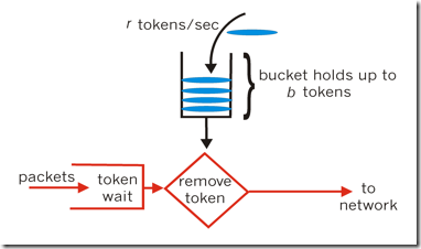 当一个n个字节大小的数据包到达,将从桶中删除n个令牌,接着数据包被发送到网络上。