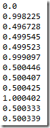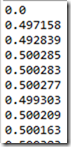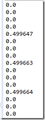 输出结果如下图,由于设置了缓冲的时间是3秒,令牌桶一开始并不会0.5秒给一个消息,而是形成一个平滑线性下降的坡度,频率越来越高,在3秒钟之内达到原本设置的频率,以后就以固定的频率输出。