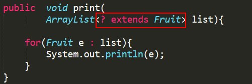 “是的,陛下,这样以来就可以接收ArrayList<Fruit> 和 ArrayList<Apple> ,ArrayList<Orange> 这样的参数了!”