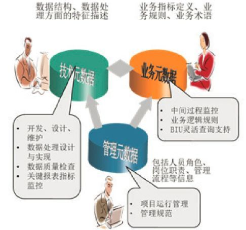 元数据包括业务元数据、技术元数据和管理元数据。元数据管理以业务模型为切入点, 以数据模型 (特指基于业务原始数据且未进行逻辑加工处理的模型) 为中心, 制定业务模型和数据模型标准, 管理数据模型、数据应用、数据集成、数据处理、数据视图等对象元数据信息, 监控标准的执行情况。