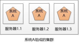 小明的公司不差钱,就多买几台机器吧, 小明把系统A一下子部署了好几份(例如下图的3个服务器),每一份都是系统A的一个实例, 对外提供同样的服务,这样能睡个安稳觉了,不怕其中一个坏掉了,我还有另外2个呢。