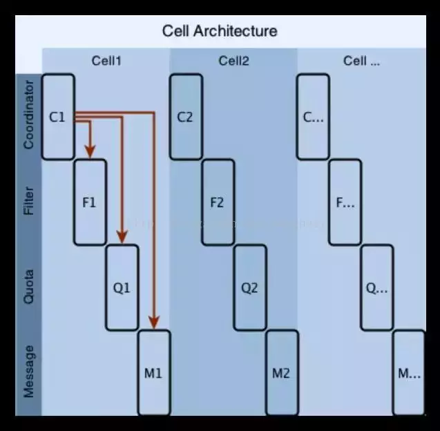 在单元化架构下,服务虽然分层划分,但每个单元自成一体。按照层次来讲的话,所有层使用相同的分区算法,每一层都有相同数量的节点,上层节点也会访问指定的下层节点。
