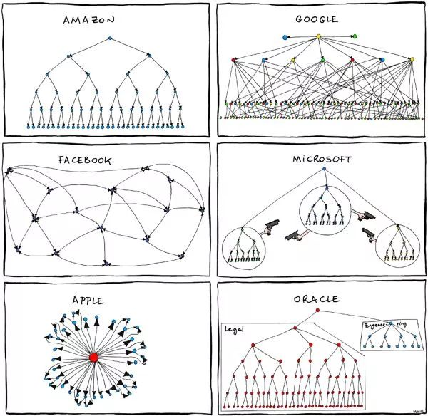 所以,一个大的组织因为沟通成本/管理问题,总为被拆分成一个个小团队。