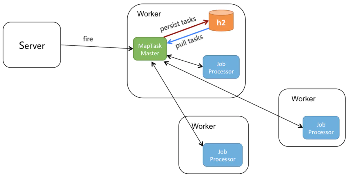 - MapTaskMaster收到map方法,会把task持久化到本地h2数据库。