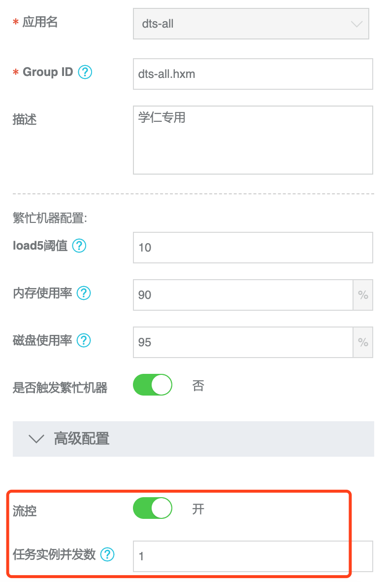 1) 新建应用分组的时候,高级配置可以打开流控开关(默认关闭)