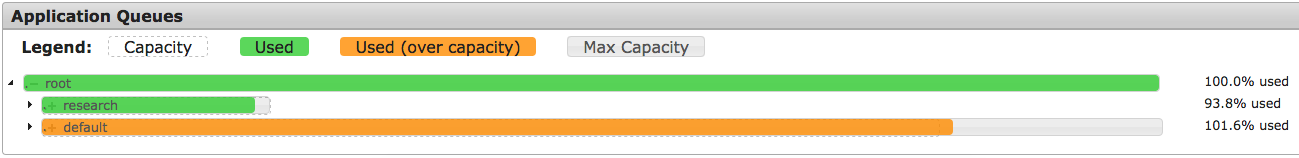 熟悉大数据的同学,应该对下面这个图很熟悉。这个是yarn的优先级队列,对不同优先级的任务做资源隔离