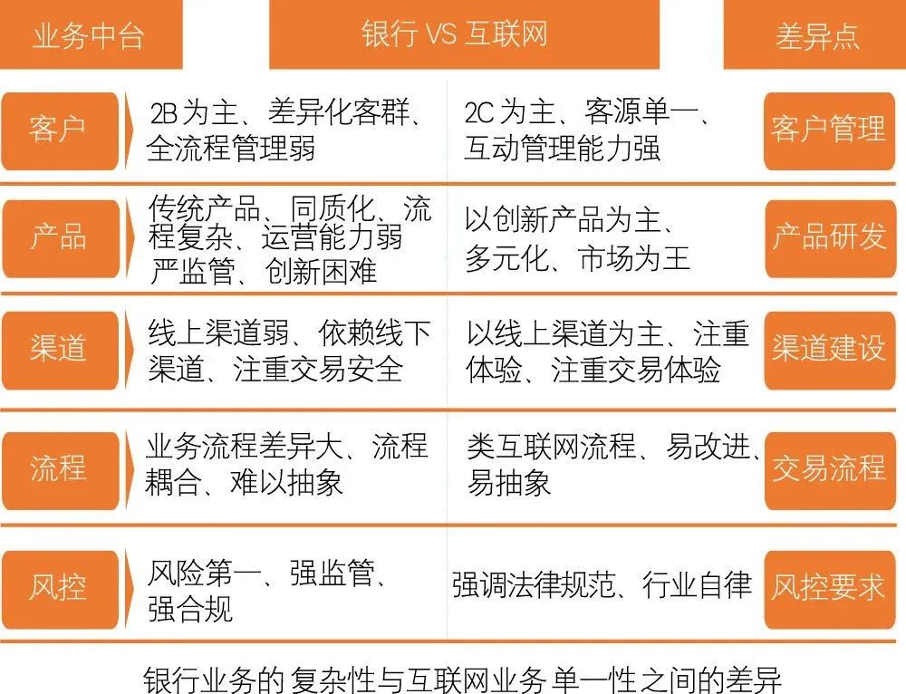 图2 银行中台与互联网中台的差异