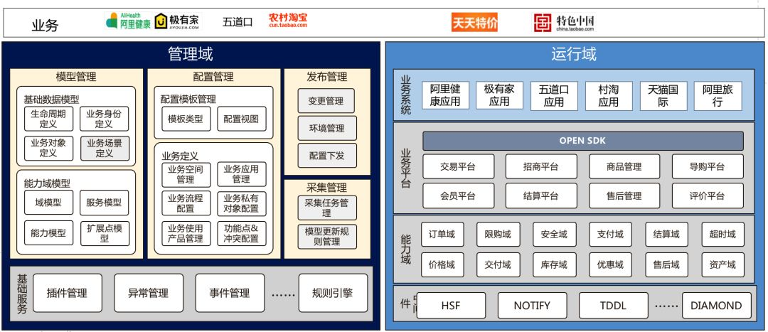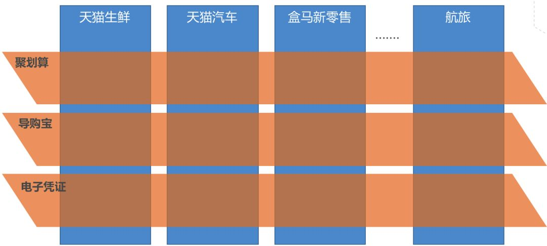 阿里电商业务五花八门,各部门的定位也不一样,有的定位于是面向“垂直”行业的,比如天猫汽车业务、盒马生鲜业务、航旅业务等;而有的又是定位于面向对所有行业支撑的平台业务,如聚划算、导购宝等。 所以,业务本身会分成“垂直”和“水平”两个维度。在一次业务交互过程中,其业务复杂度就在于业务“垂直”维度与“水平”维度产生的叠加,并由叠加而产生的业务规则上的冲突。