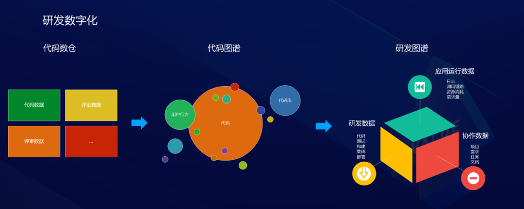 有没有解决以上问题的灵丹妙药呢?云效团队给出的解法是“工具+数据+智能”。其实我们每天在使用的云效代码管理平台、钉钉等都是非常好用的工具。在这些工具基础之上,结合大数据、智能化手段是否可以在代码编写提效、代码质量、安全提升方面做一些探索呢?