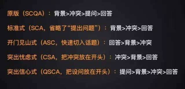 SCQA模式的表述,是不是有一点打动你了?当然,SCQA 可以顺序调整,如“SQCA”, 也可以去掉某一个,如“CSA ”等等。
