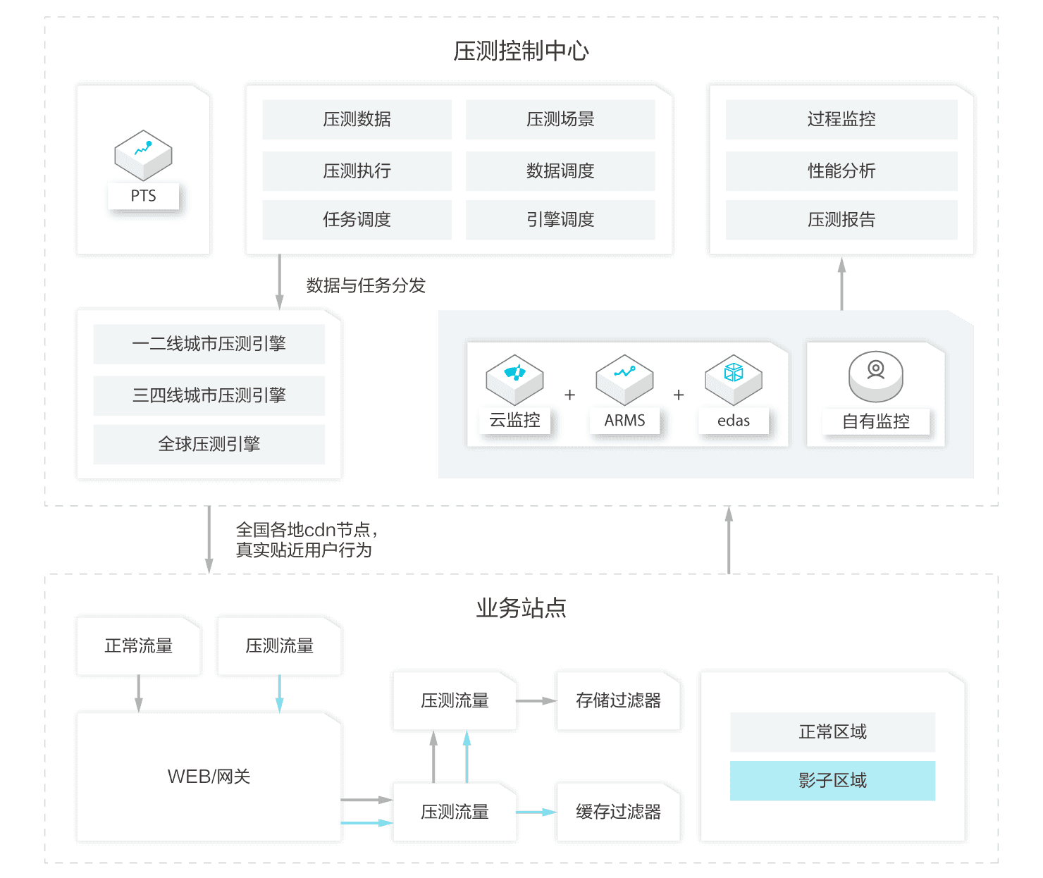 全链路压测:更进一步的,如果在生产环境想直接精准衡量业务容量,可以通过PTS相关解决方案使生产环境具备压测流量识别和 路由到指定影子存储区域的能力,结合相关影子存储区域的准备,然后做到同样规模基础数据上的业务流量压测同样的生产环境,最终达到精准衡量线上生产环境的能力。当然,对于压测流水数据由于已经隔离开,所以可以方便安全地清理和维护。