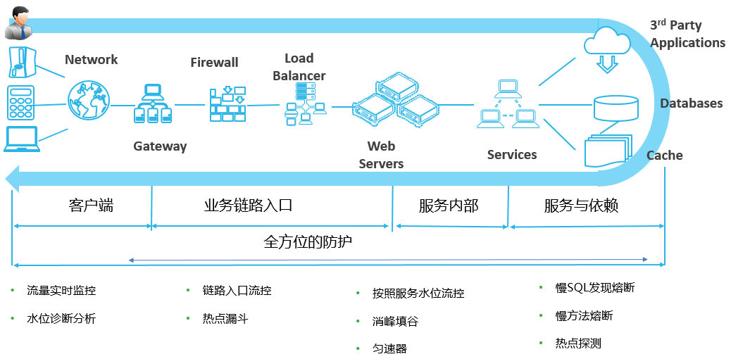 以流量为切入点,从流量控制、熔断降级、系统负载保护等多个维度来帮助客户保护服务的稳定性。