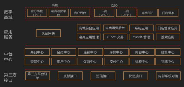 茅台借助阿里云上线的“茅台云商”,平台集社会化营销、溯源验证、大数据精准营销、跨界精品销售、收藏拍卖等于一体,推动线上线下的高度融合,阿里云与合作伙伴云徒科技共同为茅台打造了“业务中台”。 按照阿里云企业级互联网架构“厚平台、薄应用”的理念,茅台电商的中台包括营销中心、会员中心、商品中心、交易中心等十多个共享服务中心。