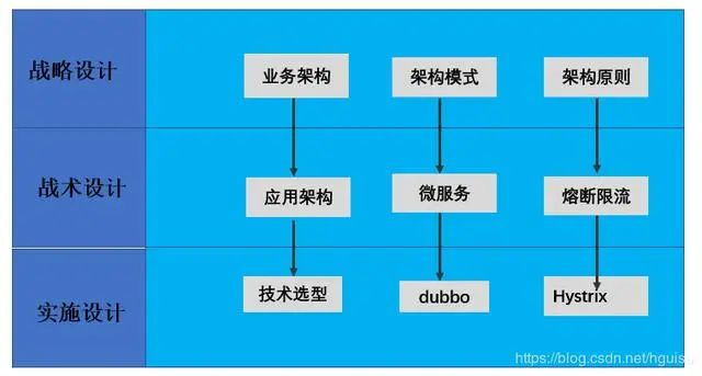 业务架构是战略,应用架构是战术,技术架构是装备。其中应用架构承上启下,一方面承接业务架构的落地,另一方面影响技术选型。