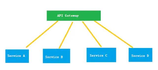 service A、B、C、D 分别是业务组件,通过API Geteway进行业务访问。