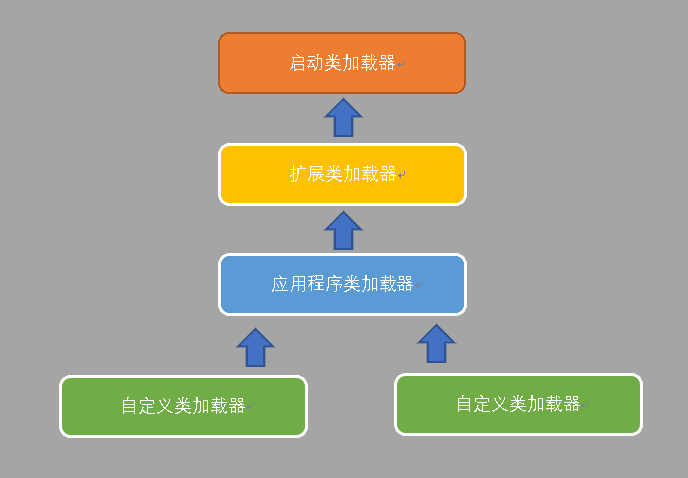 所有其他的类加载器:这些类加载器都由Java语言实现,独立于虚拟机之外,并且全部继承自抽象类java.lang.ClassLoader,这些类加载器需要由启动类加载器加载到内存中之后才能去加载其他的类。