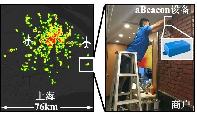 在小规模测试后,从2018年1月开始,如图2所示,我们在上海的12000余家商户里部署了aBeacon设备。我们用一份包含“部署在哪里”、“怎么固定”、“如何绑定”等问题的部署手册来指导业务经理进行部署。在运行过程中,我们通过后台收集的数据,可以对所有设备进行实时监控,所有设备被分类为“健康”、“部署错误”、“下线”等状态。我们针对不同的设备还可以采取不同的维护措施,比如针对“部署错误”的设备进行重新部署。