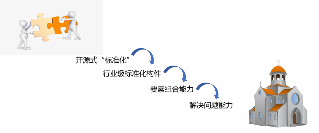 从行业级层面提升开发效能首先一点要考虑的是如何跨企业复用,上文讲的还是企业内部基于自身架构的复用设计,但是从行业的角度来讲,比如金融行业这种监管比较严的行业,很多业务规则大家都一样,但是做出的系统就是不一样,经常要把别人做过的功能换一个企业再重做,这对谁而言都是浪费。