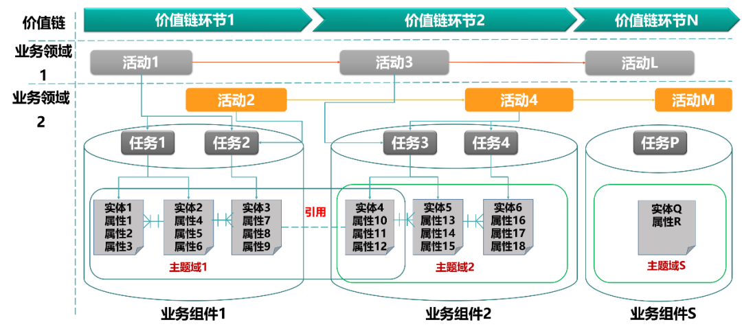 在统一价值链下,我们可以看到每一个领域是如何按照企业统一的价值创造过程去展开业务活动的,进而把业务活动再细分到任务层级。任务需要创造数据,现在大家经常提“一切业务数据化”,但如何做呢?通过这种方式,我们可以看到任务创造了哪些关键数据,反过来也可以检验一下,这个数据是不是完整?是不是所有关键的活动都会记录下来?