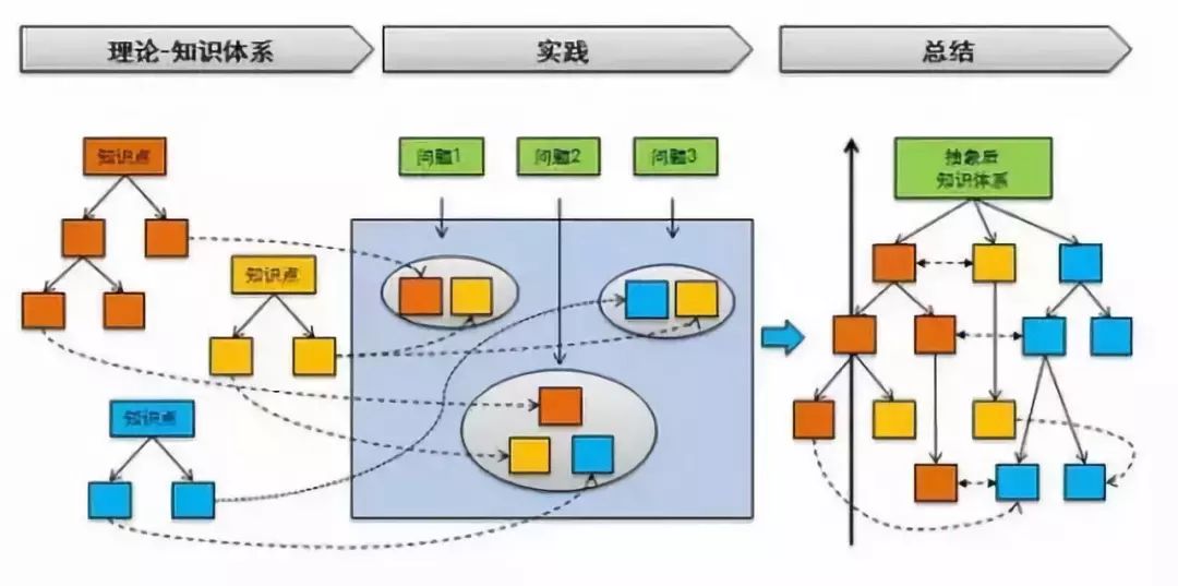 想要完整的构建一套知识体系,一定要经历知识的分解和再聚合,知识的分解和再聚合是从理论—实践—理论的循环迭代过程。