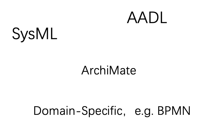 除了上述几种方法以外,在软件行业蓬勃发展的数十年间也涌现出过很多其他的优秀架构制图方法,其中既包括一些通用方法,如:SysML、AADL、ArchiMate,也包括一些领域特定方法,比如在企业中后台业务建模场景中很常见的 BPMN。再详细地展开描述各个方法,显然会让本文又臭又长(虽然写到这里时似乎就已经注定了),有兴趣的读者可以自行检索和探索。