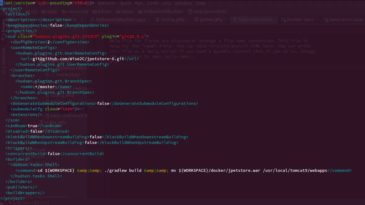 在之前我们使用mvn hpi:create创建插件目录时,Jenkins在我们的项目中生成了一个HelloWorldBuilder的插件,这是一个官方示例,下面带大家分析一下这个插件的示例源码