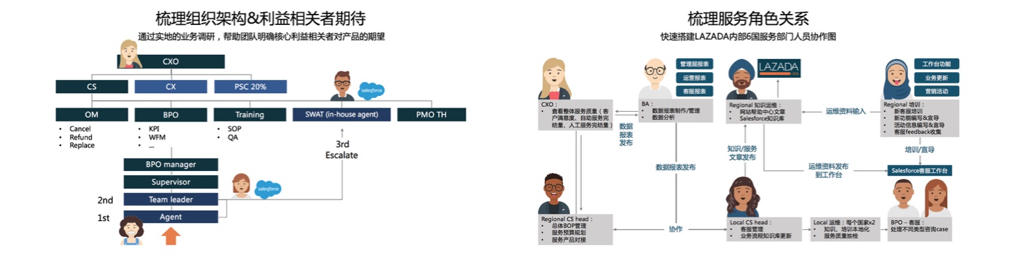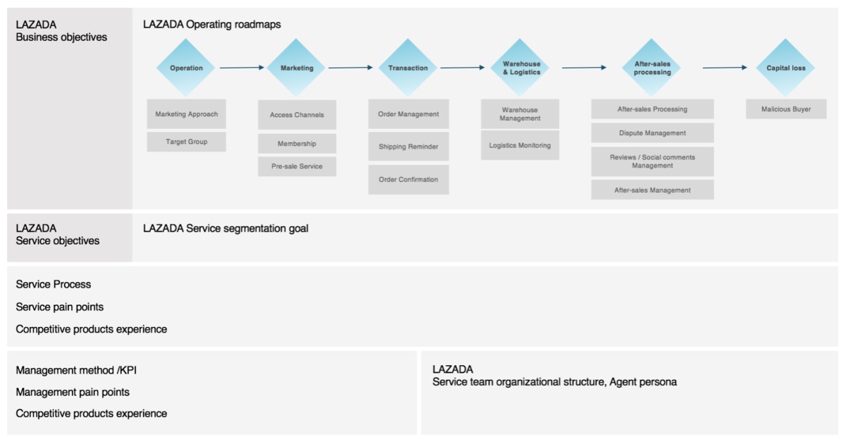 通过调研我们发现:Lazada服务团队与服务BOP 之间的管理关系并没有很紧密,在服务指标整体的管理上面相较于淘系平台要求较简单。但是也同样存在客服流动性大,不稳定等通用问题。而一线客服在日常使用产品的过程中,则面临系统割裂操作效率不高等问题。