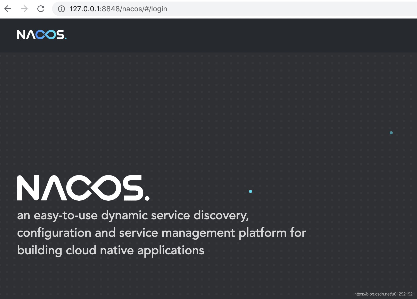 浏览器输入:http://127.0.0.1:8848/nacos/ 跳转到登录界面,输入账号密码即可到控制台。