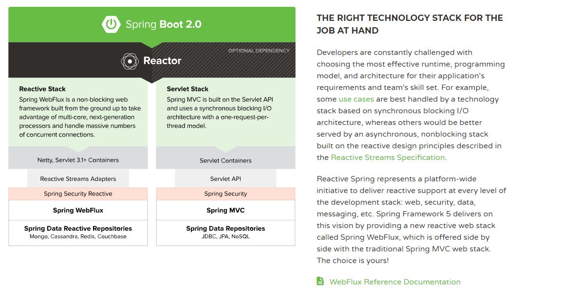 总结起来,WebFlux 只是响应式编程中的一部分(在 Web 控制端),所以一般我们用它与 SpringMVC 来对比。