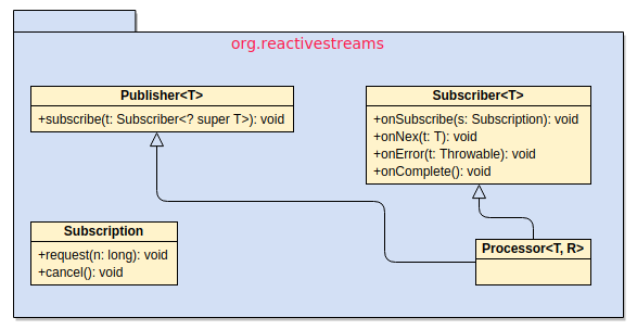 public interface Processor<T,R> extends Subscriber<T>, Publisher<R> {