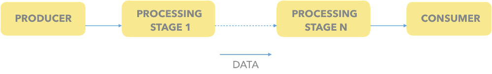 一个通用的流处理架构一般会是这样的(生产者产生数据,对数据进行中间处理,消费者拿到数据消费):