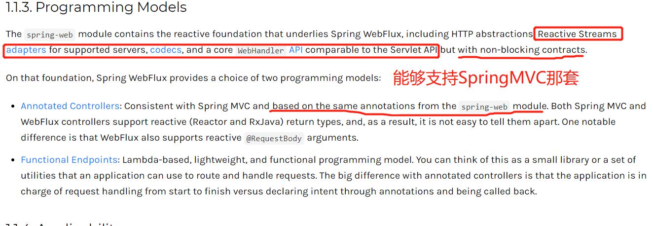 Spring官方为了让我们更加快速/平滑到WebFlux上,之前SpringMVC那套都是支持的。也就是说:我们可以像使用SpringMVC一样使用着WebFlux。