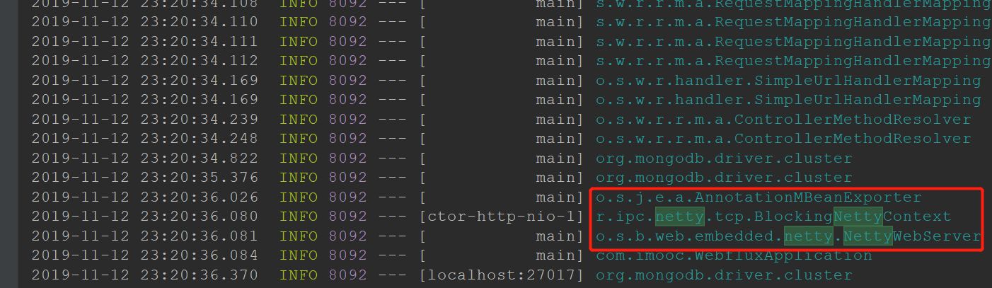 } 首先,值得说明的是,我们构建WebFlux环境启动时,应用服务器默认是Netty的: