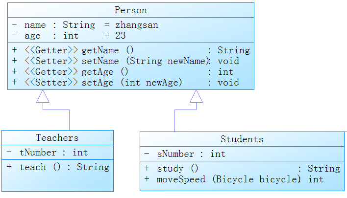 通过上面的Person的类图,你应该可以看出类图有三部分组成,类名,属性和操作方法